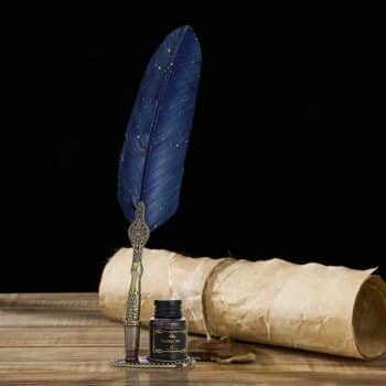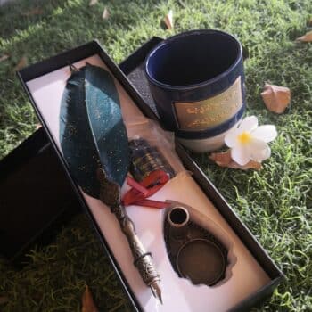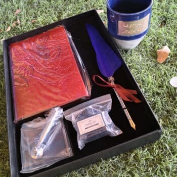 بوكس قلم ريشة وحافظة القلم وعلبة حبر ومفكرة جلدية أنيقة